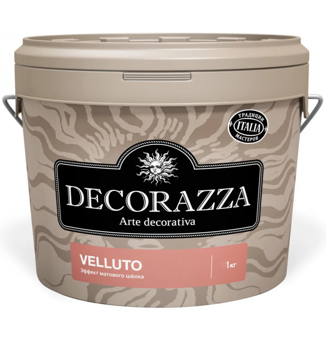 Запоминающиеся бесшовные декоры, создаваемые с использованием продукта Decorazza Velluto, подходят для современных и классических интерьеров, включая неоклассицизм, гранж, минимализм, контемпорари, венецианский стиль и другие. Благодаря особому составу, кроме экологичности и пожаробезопасности, краска обладает устойчивостью к влажной уборке, может реставрироваться в случае появления повреждений. Декоративный материал с бархатистой структурой можно использовать для имитации матового гладкого или драпированного шелка, а также для формирования брутального гранжевого рисунка с имитацией многослойного покрытия. Колеруется в большое количество оттенков по каталогу: от нежного небесного до светлого песочного
