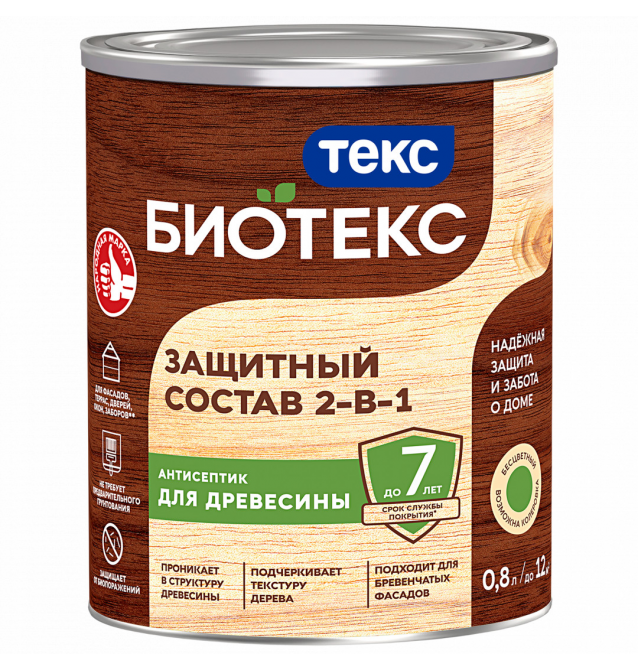 Защитный декоративный лессирующий состав Bioteks 2-в-1. Для защиты древесины от атмосферных воздействий, биологических повреждений, а также для декоративной отделки деревянных фасадов, дверей, оконных рам, террас. Защищает древесину до 7 лет. Подчеркивает структуру рисунка древесины. 2в1: грунт+антисептик