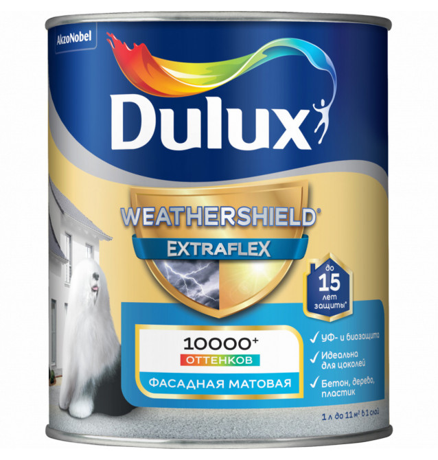 Dulux Weathershield Extraflex матовая, акриловая краска для фасадов и цоколей