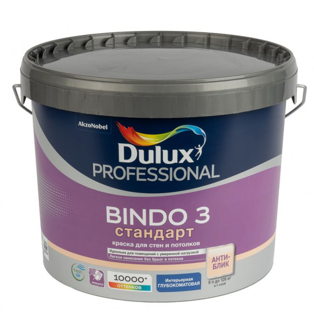 ОПИСАНИЕ: Глубокоматовая водно-дисперсионная краска для высококачественной отделки стен и потолков в помещениях со стандартной нагрузкой, таких как спальни, гостиные, детские, кабинеты. Антибликовое покрытие отлично маскирует мелкие дефекты поверхности. Тиксотропная: наносится без брызг и потеков, легко разравнивается; с нейтральным запахом. ОБЛАСТЬ ПРИМЕНЕНИЯ: Для окраски стен и потолков в помещениях с умеренной влажностью и умеренной эксплуатационной нагрузкой. Наносите на полностью просохшие и гладкие минеральные поверхности (бетон, штукатурка, кирпич и т.п.), гипсокартон, обои под покраску, деревянные поверхности, ДВП. Заявленные свойства краски зависят от выбранного типа обоев. Рекомендована для применения в детских и лечебно-профилактических учреждениях. ОСОБЕННОСТИ ПРИМЕНЕНИЯ: Разбавление: При необходимости не более 1 части воды на 10 частей краски. Распыление: Обычное распыление: разбавить в соотношении не более 1 части воды на 5 частей краски — подходит для большинства оборудования. Безвоздушное распыление: разбавление водой не требуется. При необходимости добавить до 10% воды. Рекомендуемое рабочее давление от 100 до 150 бар, угол распыла факела 30-50°, диаметр сопла 0,012-0,017 дюйма. Дополнительно ознакомьтесь с рекомендациями на сайте производителя окрасочного оборудования. РАЗБАВИТЕЛЬ: Вода. РАБОЧИЕ ИНСТРУМЕНТЫ: Кисть, валик, распылитель. ВРЕМЯ ДО НАНЕСЕНИЯ СЛЕДУЮЩЕГО СЛОЯ: 1 час. ВРЕМЯ ПОЛНОГО ВЫСЫХАНИЯ: 2-4 часа. РАСХОД (в 1 слой): До 14 м2/л УХОД ЗА ОКРАШЕННОЙ ПОВЕРХНОСТЬЮ: Через месяц после окрашивания поверхность устойчива к мытью с использованием мягких моющих средств (раствор мыла, геля для душа или мытья посуды, шампуня), возможно небольшое изменение блеска покрытия. Не оставляйте поверхность мокрой после очистки.