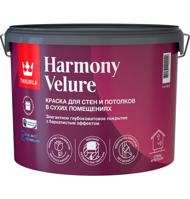 Краска для стен и потолков в сухих помещениях. Создает элегантное глубокоматовое покрытие с бархатистым эффектом.