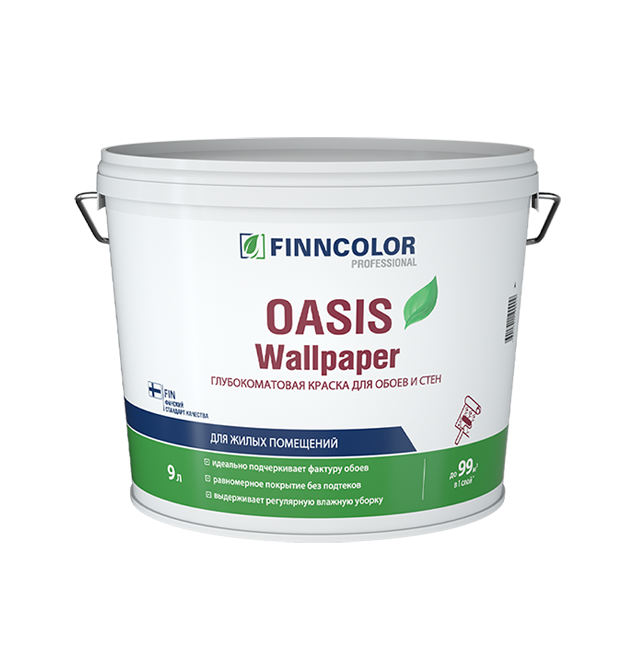 ТИП: Глубокоматовая водно-дисперсионная краска предназначена для сухих помещений и помещений с повышенной влажностью, обладает легкостью нанесения и прекрасно подчеркивает фактуру обоев. ОБЛАСТЬ ПРИМЕНЕНИЯ: Предназначена для высококачественной окраски всех типов обоев: структурных, флизелиновых, виниловых, текстурированных и стеклообоев и отделки стен внутри сухих помещений и помещений с повышенной влажностью (кухни, коридоры, кроме ванных комнат) по бетонным, оштукатуренным, гипсокартонным, кирпичным, деревянным поверхностям. Рекомендована для окраски в зданиях и сооружениях типа А, Б и В (в том числе в детских учреждениях и помещениях административной группы лечебно-профилактических учреждений). ОБЪЕКТЫ ПРИМЕНЕНИЯ: Применяется для окрашивания стен и обоев в сухих и влажных помещениях (кроме ванных комнат) с умеренной эксплуатационной нагрузкой. ЦВЕТ: База: A и C. Для получения пастельных и насыщенных оттенков воспользуйтесь компьютерной колеровкой Tikkurila. База A может также использоваться в качестве белой краски. При окрашивании в яркие цвета на базе С, рекомендуется предварительно нанести слой краски базы А, заколерованной в похожий оттенок. База С используется только в колерованном виде. Во избежание различий в оттенке используйте краску одной партии. БЛЕСК: Глубокоматовый. РАСХОД: 6–8 м²/л - по неровной впитывающей поверхности; 9-11 м²/л - по ровной невпитывающей поверхности. СПОСОБ НАНЕСЕНИЯ: Наносится валиком, кистью или распылением. ВРЕМЯ ВЫСЫХАНИЯ (при 20±2°C и относительной влажности 65±5 %) 1,5 часа перед нанесением следующего слоя. Заданный уровень устойчивости покрытия к мытью достигается через 4 недели. Внимание! При понижении температуры и увеличении относительной влажности воздуха время высыхания может увеличиваться. СТОЙКОСТЬ К МЫТЬЮ: Краска образует глубокоматовое покрытие, устойчивое кмытью с применением бытовых неабразивных моющих средств. После мытья допускается небольшое изменение блеска покрытия. СТОЙКОСТЬ К МОКРОМУ ИСТИРАНИЮ: 2 класс стойкости покрытия к влажному истиранию по стандарту ГОСТ 32300/ ISO11998/ DIN EN 13 300)