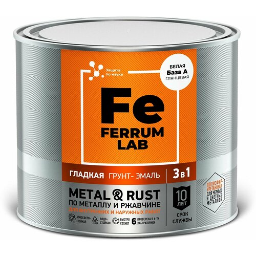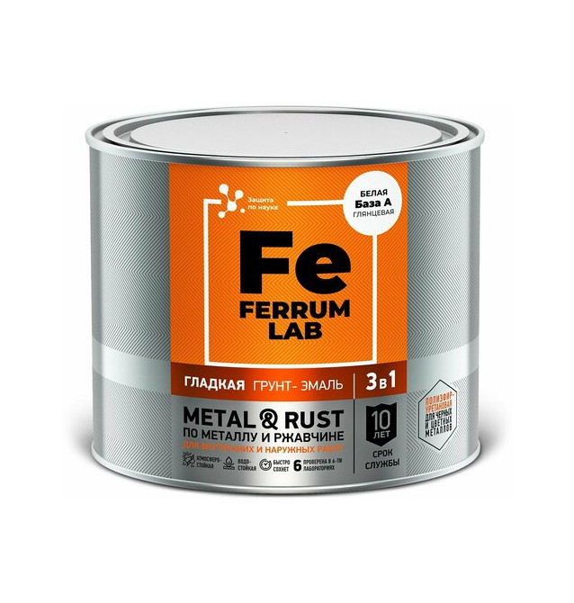 Грунт-эмаль FERRUM LAB по ржавчине 3 в 1 гладкая полуматовая