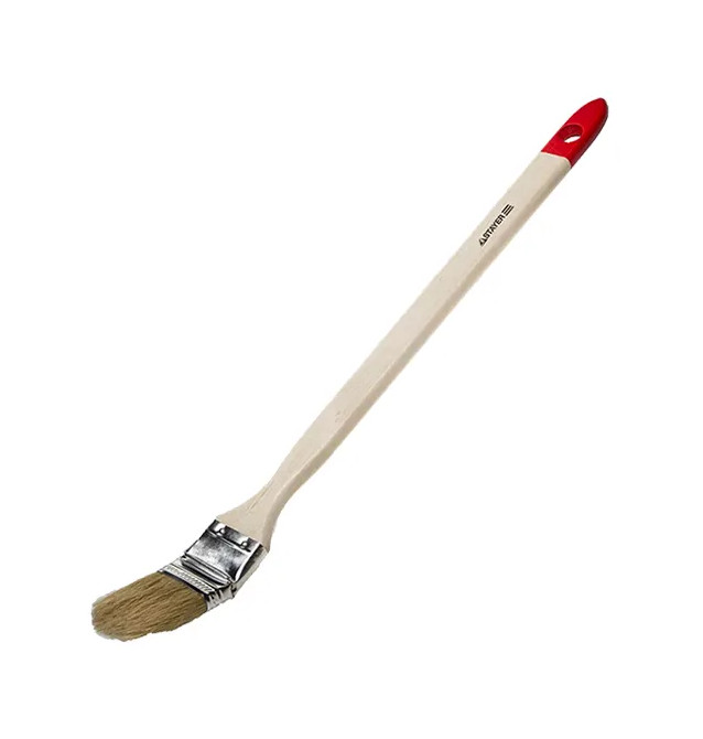 Особенности: удлиненная форма кисти позволяет легко достигать труднодоступных мест. Натуральная щетина обеспечивает равномерное нанесение краски и хорошую впитываемость материала.
