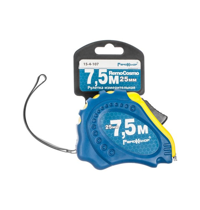 Рулетка Remokolor 7,5 м предназначена для точных измерений на строительных объектах, при отделочных работах, монтаже мебели и выполнении разметки на средних и больших длинах в помещениях и на улице. Лента шириной 25 мм обеспечивает читаемость шкалы и стабильность вылета при измерениях одной рукой на высоте и в стесненных условиях. Обрезиненный ABS‑корпус повышает ударостойкость и удобство хвата в перчатках, снижая риск выскальзывания во влажной среде.