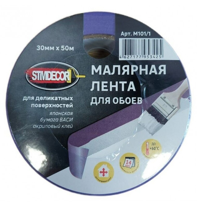 для чувствительных поверхностей, для внутренних работ, несущий слой - японская тонкая бумага Васи, вид клея - акриловый клей, для чувствительных поверхностей, температурный режим - до 60˚С, продолжительность использования 14 дней