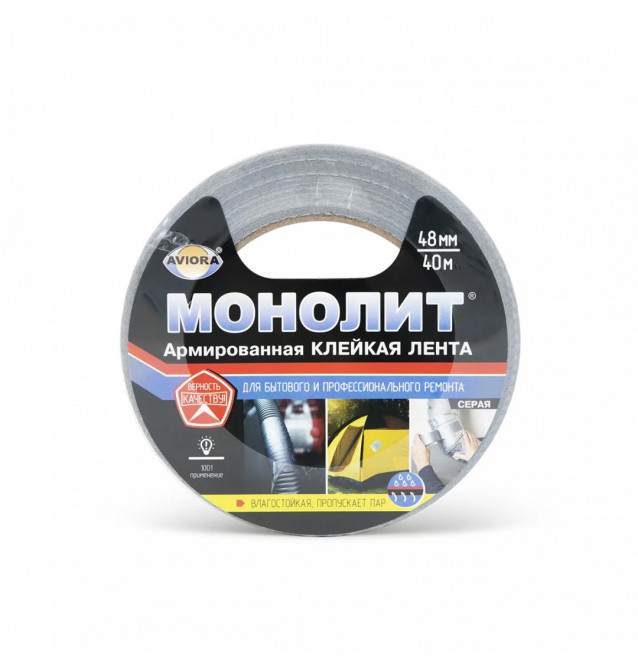 Скотч армированный Aviora Монолит, 48 мм x 40 м, серый