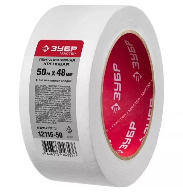 ЗУБР 48 мм х 50 м, креповый, малярный скотч, МАСТЕР